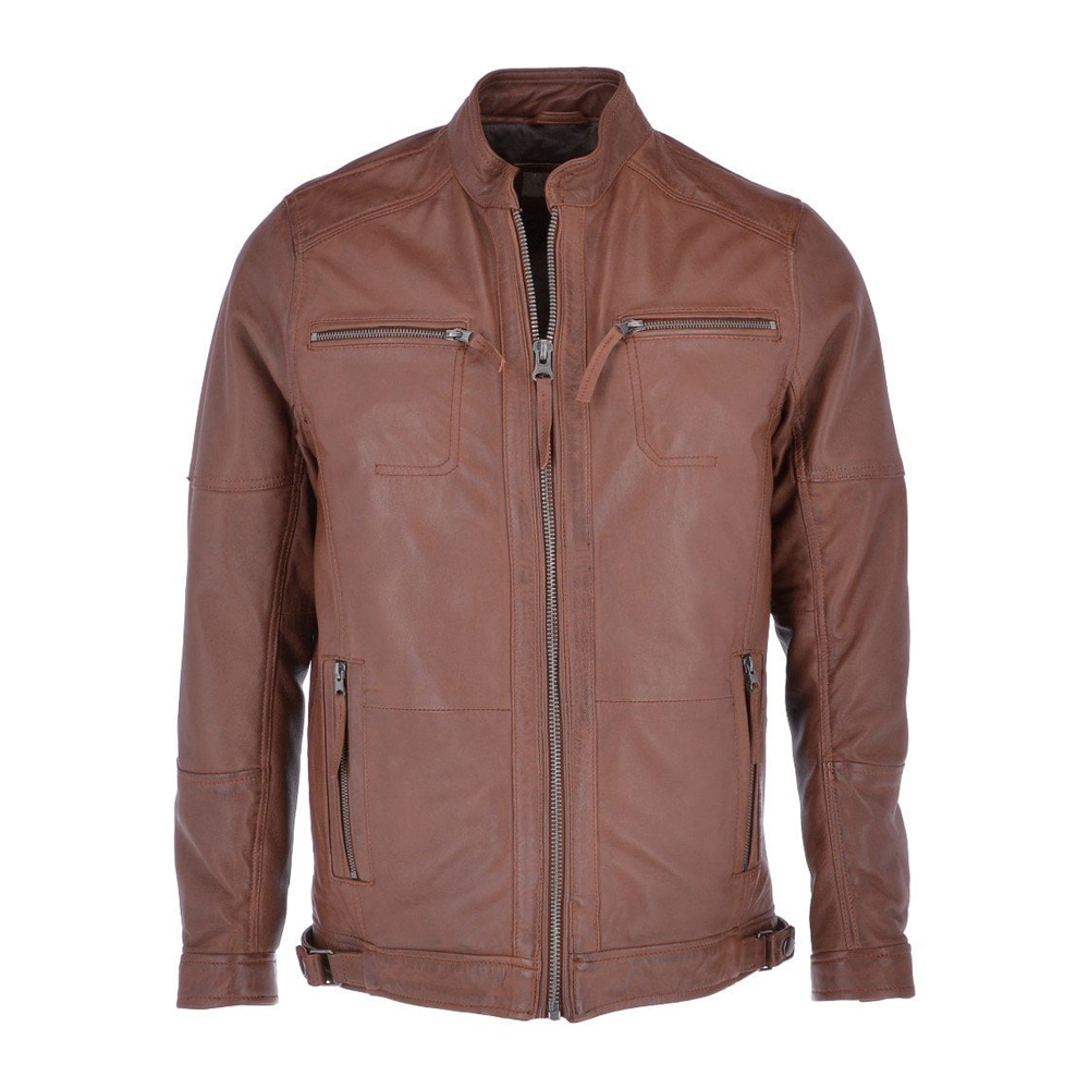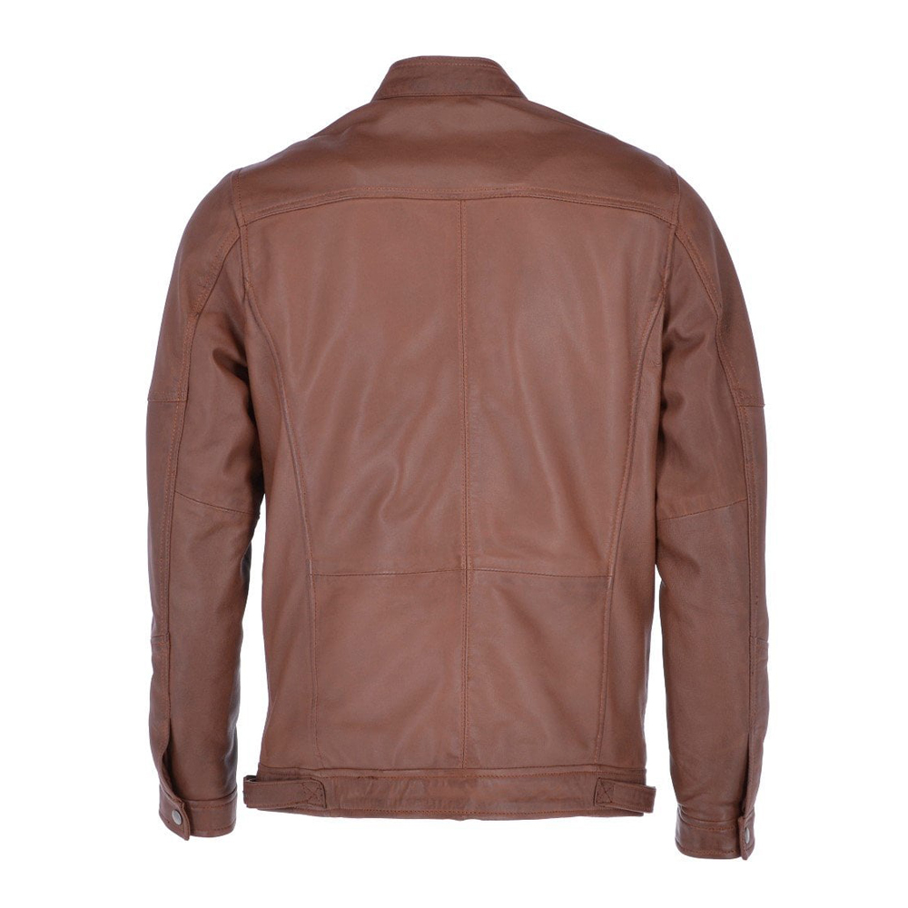• Introducin a stylish upgrade for the outing, the real cognac brown leather jacket, subtle detailing and quality that will get you unlimited compliments.Key features include soft polyester lining, four zipper pockets, two inside pockets, snap button collar/cuff and quilted texture on the shoulders.Specification: